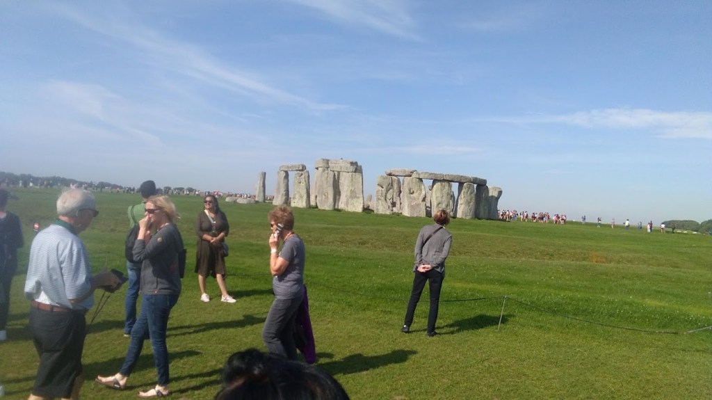 जी हाँ लगभग 2 घंटे यात्रा करने के बाद हम अपने पहले पड़ाव ‘स्टोनहेंज’ पहुंचे जो प्रागैतिहासिक काल का निर्माण है, लगभग 5,000 वर्ष पुराना और विश्व धरोहरों में शामिल है। कुल मिलाकर देखा जाए तो इसमें बड़े-बड़े पत्थर के लंबे आयताकार स्लैब, कुछ खड़े और कुछ पड़े, खड़े हुए स्लैब्स के ऊपर पड़े स्लैब टिकाए गए हैं, जैसे कोई बच्चा स्ट्रक्चर बनाता है। कितने लंबे समय से प्रागैतिहासिक काल का गोलाकार रूप में बना यह ढांचा बना हुआ है। बताया जाता है कि इसका निर्माण सूर्य की गति के अनुसार किया गया है, सुबह जब सूरज उगता है तब कहाँ से दिखता है और सूर्यास्त के समय उसकी रोशनी किधर पड़ती है। यह विश्व धरोहर है और अवश्य देखने का स्थान है। यहाँ पर पुरानी झौंपड़ियों के स्वरूप भी प्रस्तुत किए गए हैं, टिकट के साथ एक वॉकी टॉकी जैसा यंत्र दिया जाता है, इसमें आप जिस स्थान पर पहुंचे हैं, उससे संबंधित बटन दबाने पर आपको उसका विवरण सुनने को मिलता है।