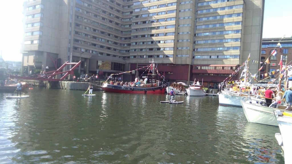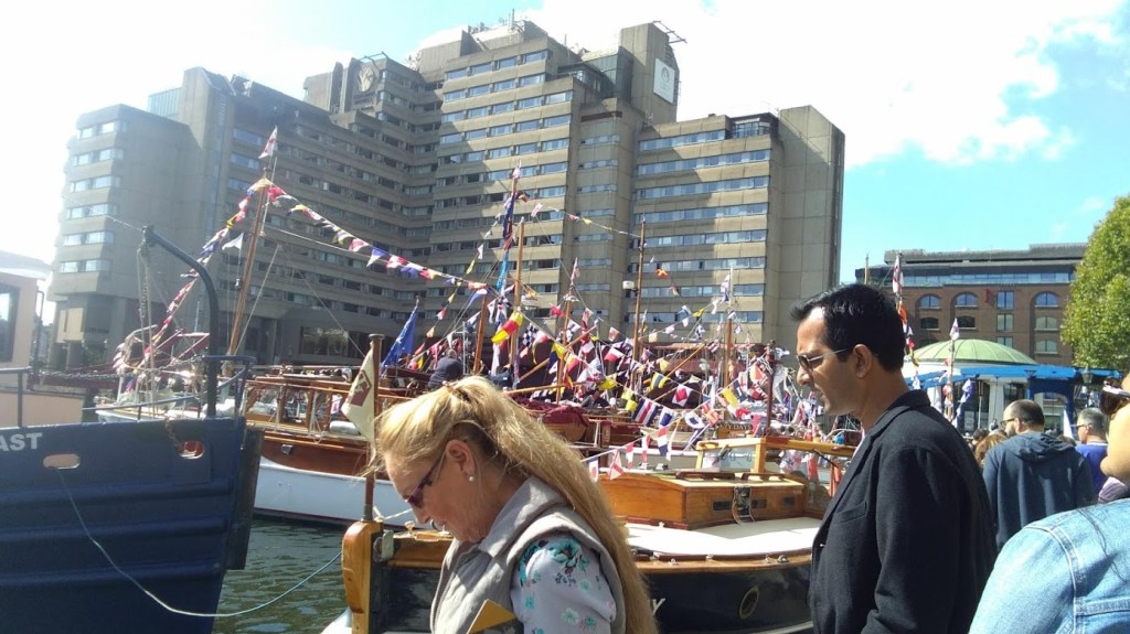 इसी क्रम में आज हम ‘सेंट केथरिन पायर’ पर गए, यहाँ 6 से 8 सितंबर तक ‘क्लासिक बोट फेस्टिवल-2019, का आयोजन किया गया है, जिसका आज अंतिम दिन था। यह स्थान टॉवर ब्रिज के बगल में है। एक बात और लंदन नगर क्योंकि थेम्स नदी के दोनों तरफ बसा है, और यहाँ नगर में अनेक नहरें इस मुख्य नदी से निकाली गई हैं। यहाँ पर अनेक आयोजन भी नदी और बोटिंग से जुड़े होते हैं।
