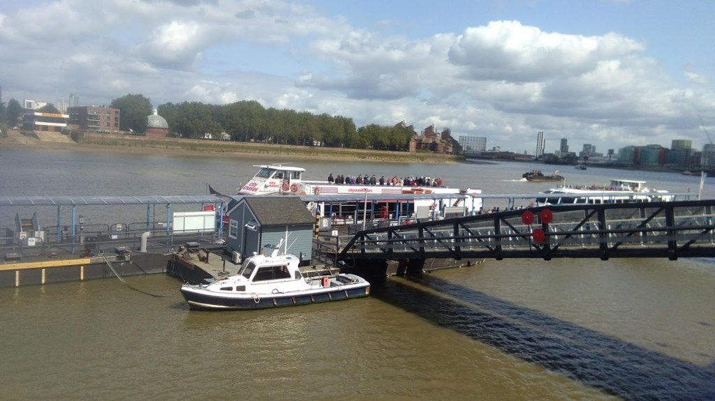 इस आकर्षक प्रदर्शनी का आनंद लेने के बाद हम वहाँ से ही नगर भ्रमण कराने वाले क्रूज़ में बैठकर ग्रीनविच तक गए और यहाँ भी नदी तट पर बने भवनों आदि के बारे में कमेंट्री के माध्यम से रोचक जानकारी प्राप्त की। यहीं हमें यह भी बताया गया कि नदी किनारे जहाँ नाव, क्रूज़ आदि रुकते हैं ऐसे अधिकांश स्थानों को ‘व्हार्फ’ कहा जाता है, उसका अर्थ है ‘वेयरहाउस एट रिवर फ्रंट’।
