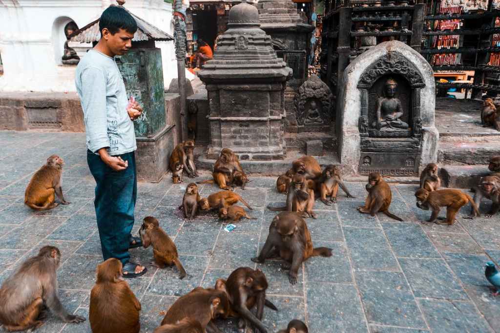 बहु संख्यक बैठे हैं वानर।