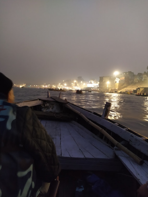 पहले दिन हम बहुत सुबह गोवा से चलकर मुंबई होकर जाने वाली फ्लाइट से वाराणसी हवाई अड्डे और वहाँ से दोपहर में, वाराणसी कैंट स्थित क्लार्क होटल पहुंचे और कुछ समय आराम करने के बाद शाम को घूमने निकले| शाम को ‘नमो घाट’ से हमने अपने भ्रमण का प्रारंभ किया जो काफी सुंदर घाट है, वहाँ की ‘लैमन टी’ भी एक विशेष आकर्षण है, चाय का वह स्वाद बहुत अलग और अच्छा है| नमो घाट से नौका करके विभिन्न घाटों से होते हुए हमारा दशाश्वमेघ घाट के बगल मे ‘राजेन्द्र प्रसाद घाट’ जाने का प्रोग्राम था, जहां पहुँचने पर शाम की ‘गंगा आरती’ में शामिल होना था|