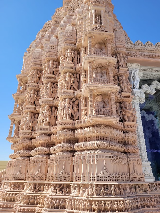 शायद दो-तीन वर्ष पहले इस मंदिर का उद्घाटन हुआ था और उस आयोजन में मोदी जी भी आए थे, तो देर से ही सही लेकिन मुझे भी सपरिवार यहाँ आना था। सो वह दिन आ गया था। हमारे लिए पहले ऑनलाइन हमारे लिए बुकिंग की गई, जिसमें हमारी आई डी, पासपोर्ट आदि का विवरण दिया गया था, जिससे वहाँ पहुंचने पर असुविधा न हो। यहाँ की फास्ट ट्रैफिक वाली चौडी सडकों पर हमारे यहाँ की राइट हैंड ड्राइविंग में एक्सपर्ट हो चुके मेज़बान बेटे ने एक घंटे में हमें वहाँ पहुंचा दिया।