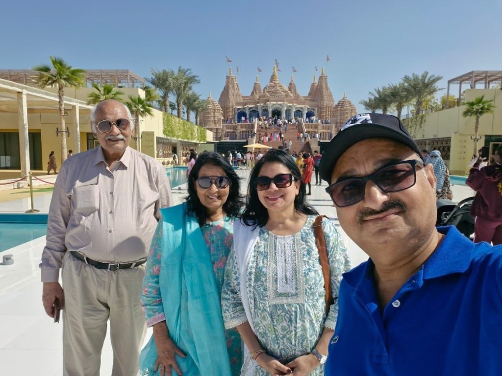 दुबई में यह पहला सप्ताहांत, रविवार का दिन, 26 जनवरी, सुबह टी.वी. पर गणतंत्र दिवस की परेड देखी और उसके बाद नाश्ता करके लगभग 12 बजे, भारतीय समय 1-30 बजे के आसपास आबू धाबी की ओर रवाना हुए, स्वामी नारायण मंदिर देखने के लिए, जो घर से लगभग 85 किलोमीटर है।