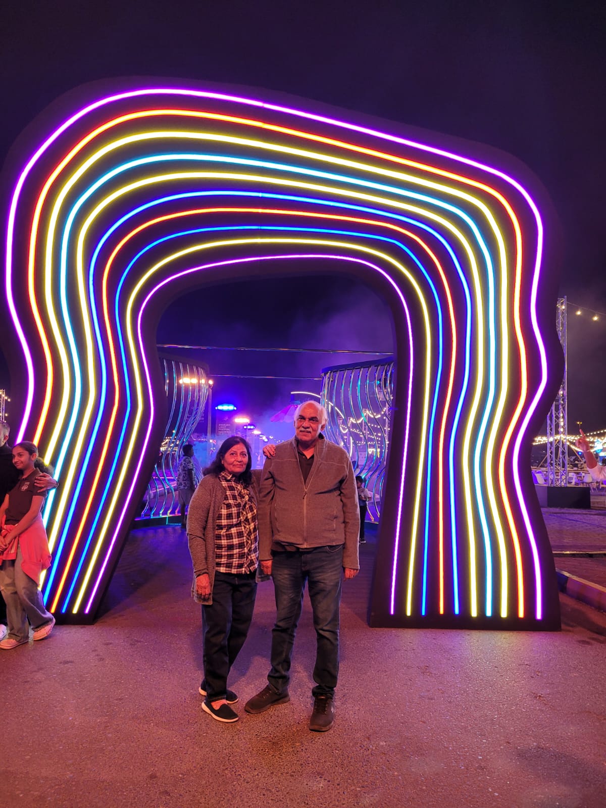 आज हम शारजाह लाइट फेस्टिवल देखने गए, वहाँ भ्रमण के दो चित्र और वहाँ से दुबई वापसी का एक चित्र शेयर कर रहा हूँ –